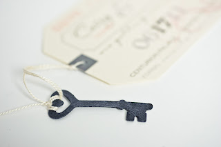 We meet and start designing her stationery. She knew she wanted a lock and key vintage theme with pale pinks and dark grays. On their save the date, we did a tag style to which she used a cricut machine and created a thick vintage key attached with a cord. Needless to say, she's pretty creative herself! This theme carried on through to the invite as well.
